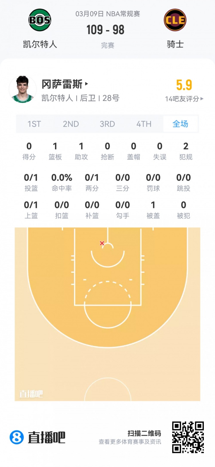 凯尔特人首轮28号秀冈萨雷斯 登场7.1分钟