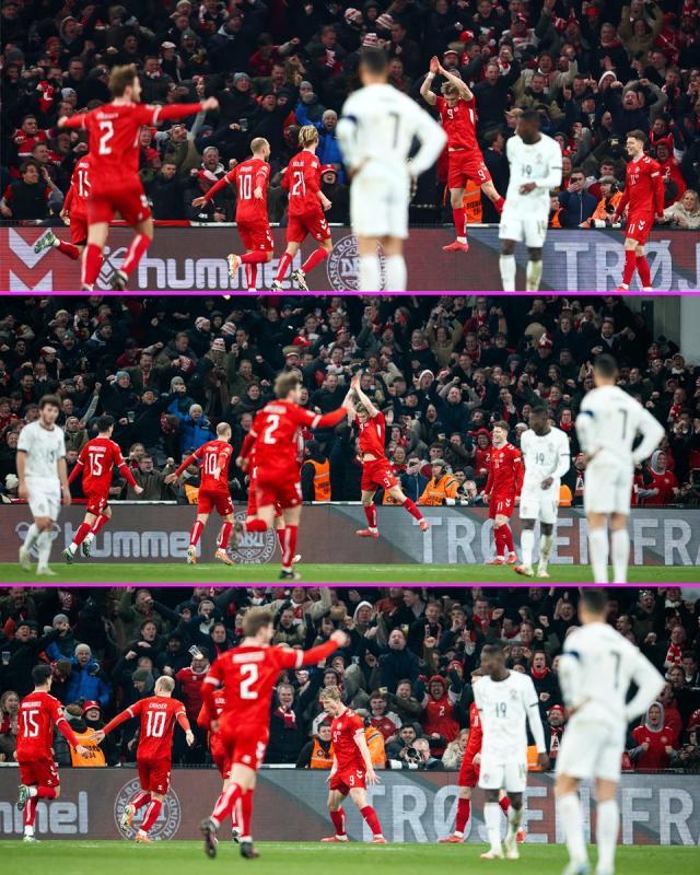 丹麦主场1比0葡萄牙,霍伊伦打进全场唯一进球。进球后霍伊伦做出C罗标志性的“Siuu”庆祝,赛后他接受采访时表示,这并非对偶像不敬,而是致敬,“这是献给我的偶像的,这不是为了嘲讽C罗或什么的。他对我和我的足球生涯产生了巨大的影响。也许这有点矛盾,但能在对阵他和葡萄牙时进球,真是太棒了。我记得2011年我去看比赛时,他打进了一粒任意球,从那时起我就成了克里斯蒂亚诺的忠实球迷。”