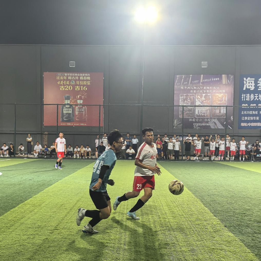 赛场上,球员们无论年龄长幼,都全情投入,带球突破、奋力拼抢,精彩的配合不断上演;场外,加油声、呐喊声此起彼伏。