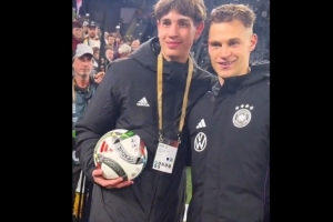 值得一提的是,现场的德国球童第一时间将足球抛给基米希,在很大程度上帮助实现了这一进球。基米希也在赛后找到这位球童,为其送上签名足球并合影鼓励。