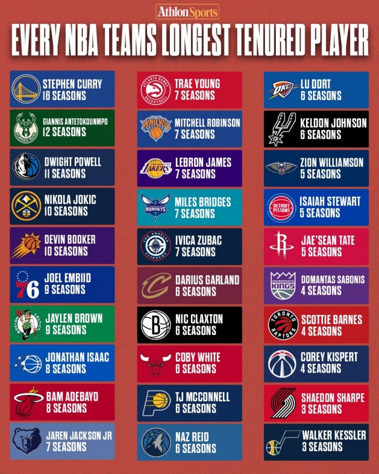 库里16季领跑!每队目前效力时长最久的球员都是谁