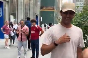 头戴米色棒球帽、身着米色T恤的纳赛尔,在决赛前三天的周四下午现身第五大道的巴黎圣日耳曼专卖店。巴黎与切尔西的世俱杯决战将于周日在新泽西MetLife体育场举行,此前参加欧洲俱乐部协会会议期间,纳赛尔已用同样方式造访过洛杉矶和迈阿密门店。此行他不仅检查了新球衣到货情况,更与球迷亲切互动。周四下午在纽约完成这些流程后,他当场向多位球迷赠送了决赛门票。